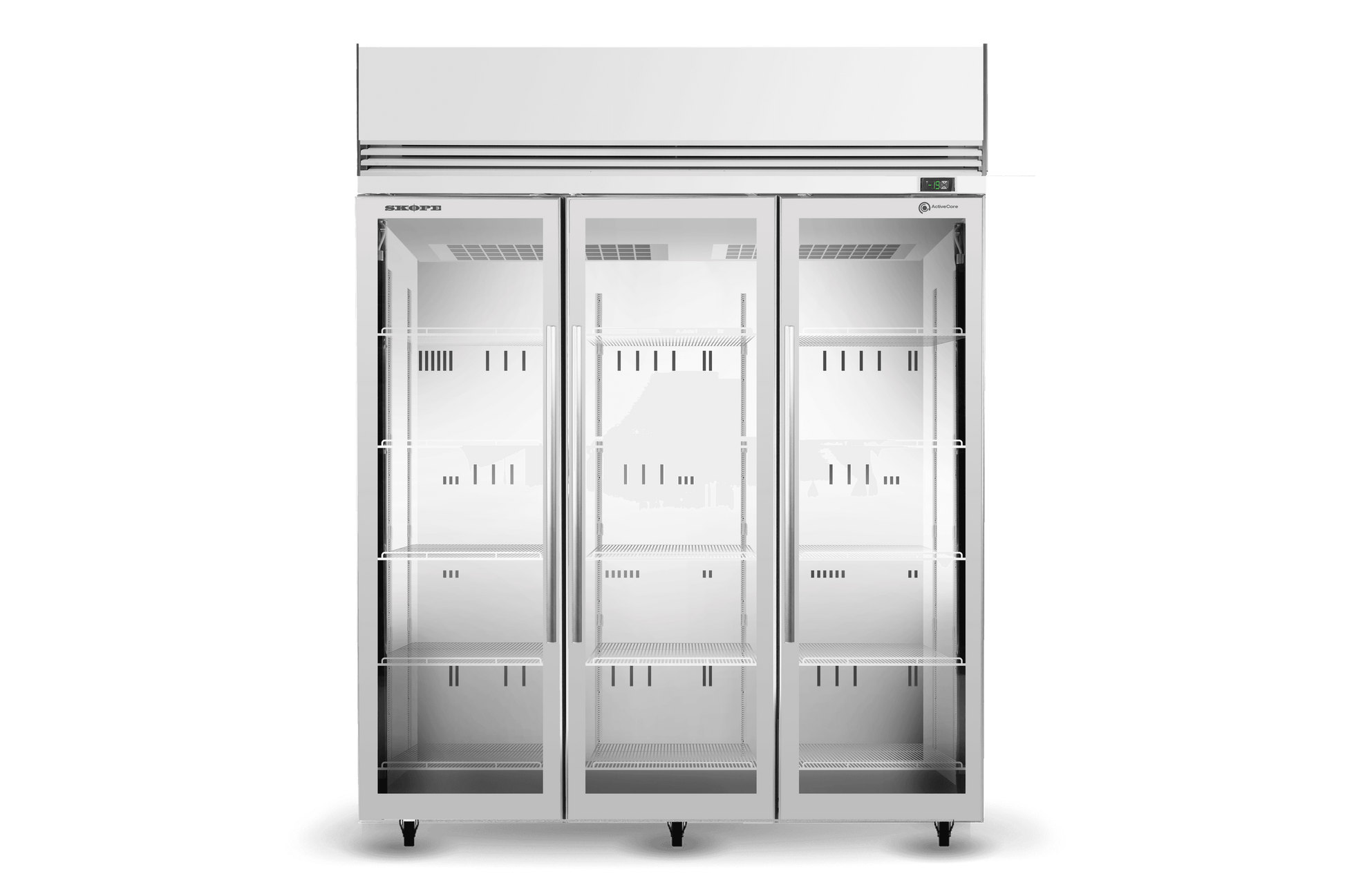 Heavy duty double glass door ice storage freezer with a higher weight load shelf, powered by ActiveCore technology offering new levels of quiet efficiency. Also features a digital inverter compressor for precise temperature control, active condensation control, and ActiveCoreÕs trademark premium look and build quality.